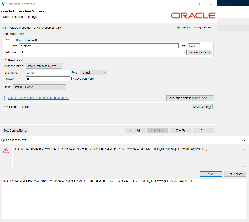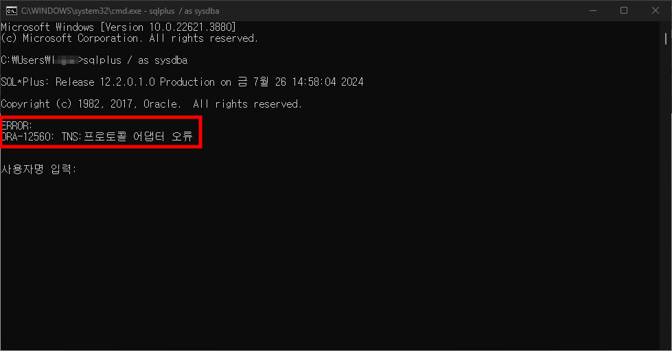 ORA-12560: TNS:프로토콜 어댑터 오류