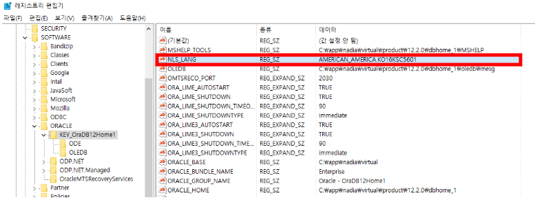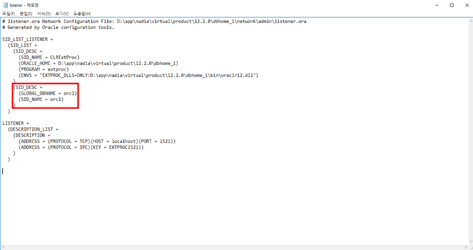 # 위의 값이 안 나오고, 만약에 빈 값이면 아래의 명령어로 설정이 필요하다. (ORCL은 최초 SID 이름 - 설정값에 따라 다를 수 있음)