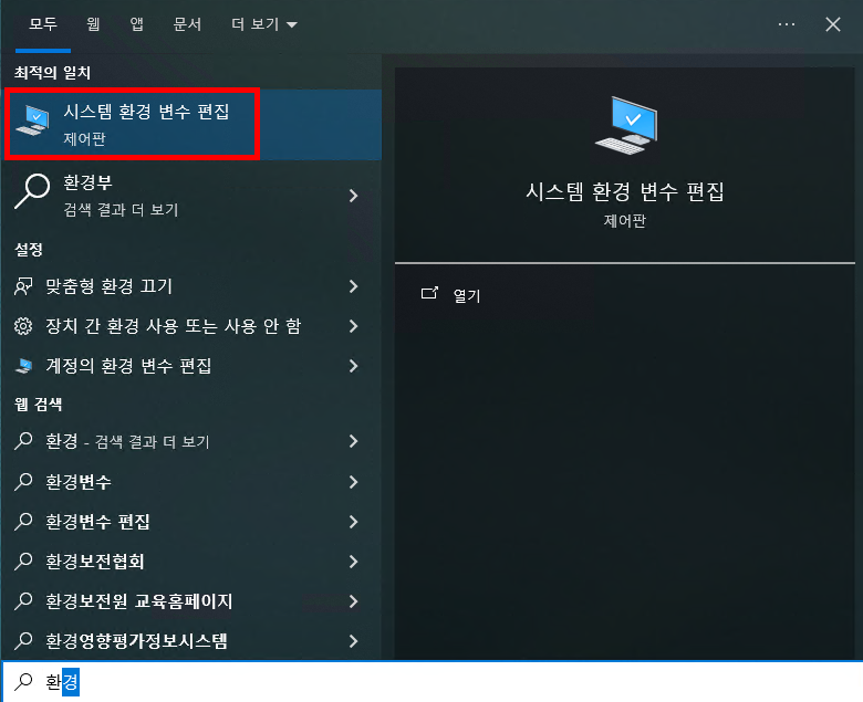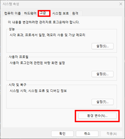 8. 위와 같이 직접 지정이 아닌 환경 변수에서 우선순위를 바꿔서 하는 방법도 있다.