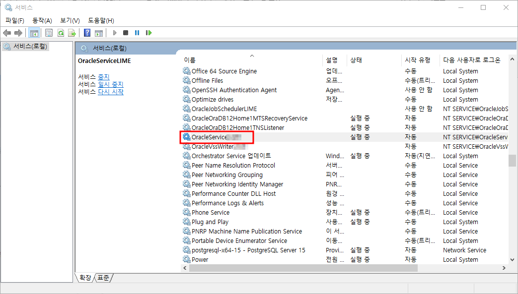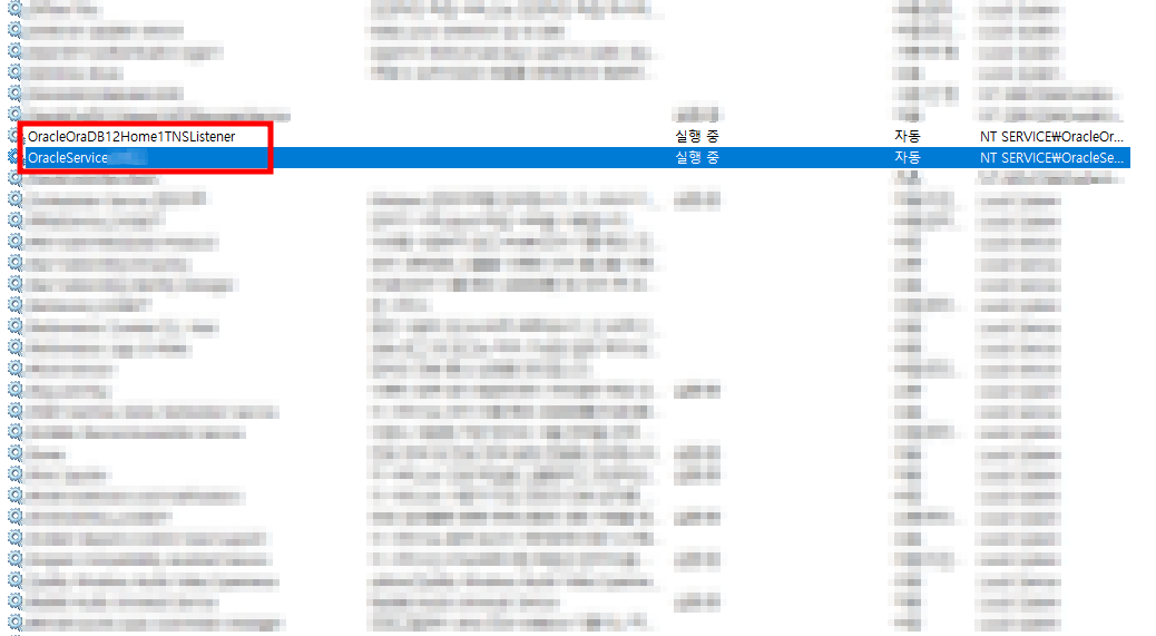 2. 해결을 위해서는 먼저 오라클 서비스가 실행 중인지 확인한다.