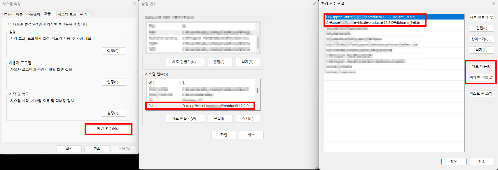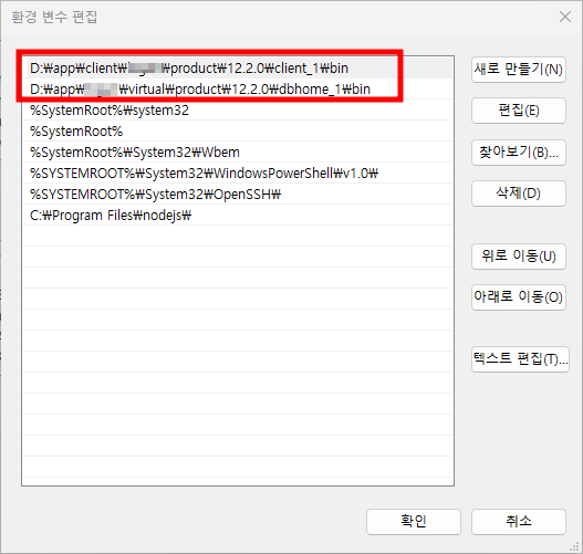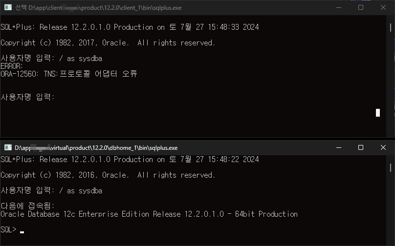 6. dbhome_1에 있는 sqlplus.exe로 실행이 되어야 하는데, 우선순위가 client_1의 sqlplus.exe로 실행이 되어서 오류가 발생한 것이다.