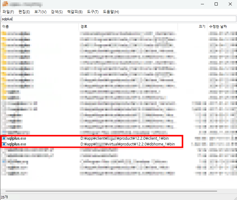(현 PC에서는 Oracle Client와 Oracle Server의 sqlplus.exe 2개가 설치되어 있다.)