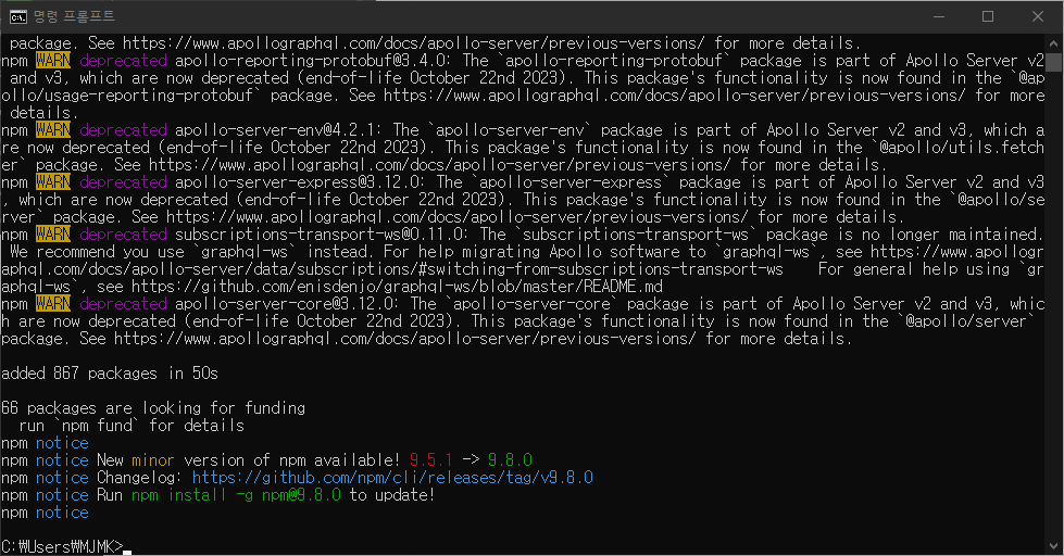 1. visual studio code 터미널에서 아래의 명령어를 입력한다.