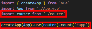 - src 폴더 안에 main.js에 router를 import 하고, 하고 router 관련 소스를 추가한다.