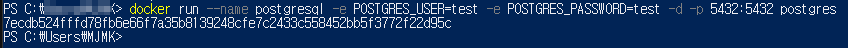 □ -e : POSTGRES_USER는 사용자 설정(POSTGRES_USER 설정 안 하면 기본 값은 postgres), POSTGRES_PASSWORD는 비번 설정