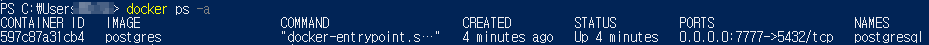 3. docker ps -a 명령어를 입력하여 이미지가 잘 만들어졌는지, 잘 실행되고 있는지 확인한다.