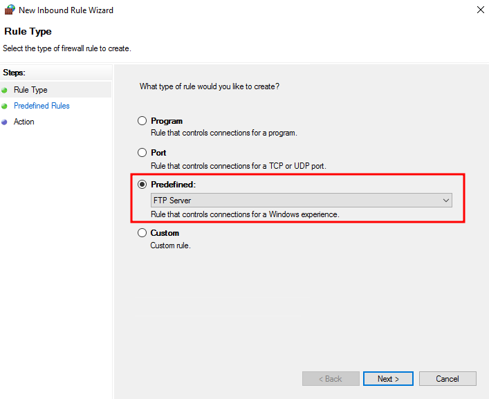 19. 지정된 폴더로 이동되면 FTP 서버 설치가 완료된 것이다.