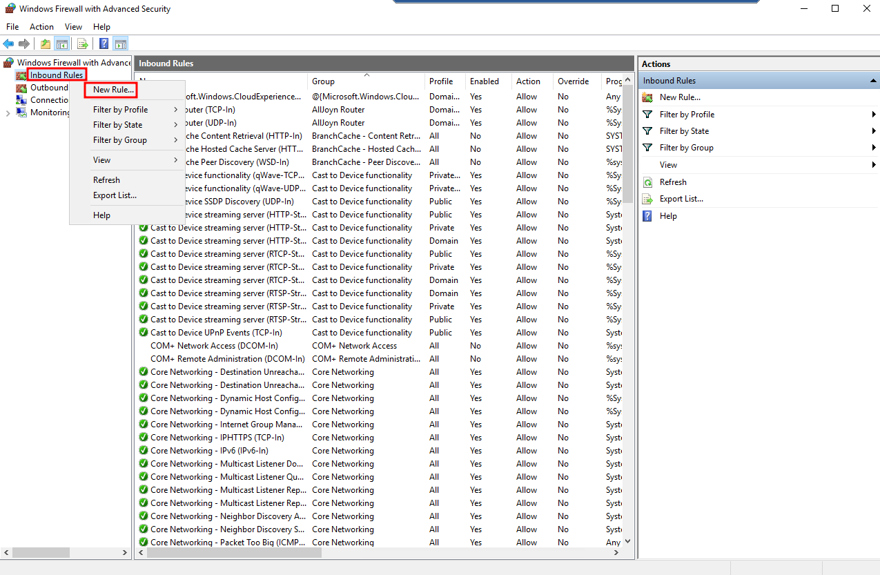 9. Inbound Rules에서 우클릭 후, New Rule를 클릭한다.