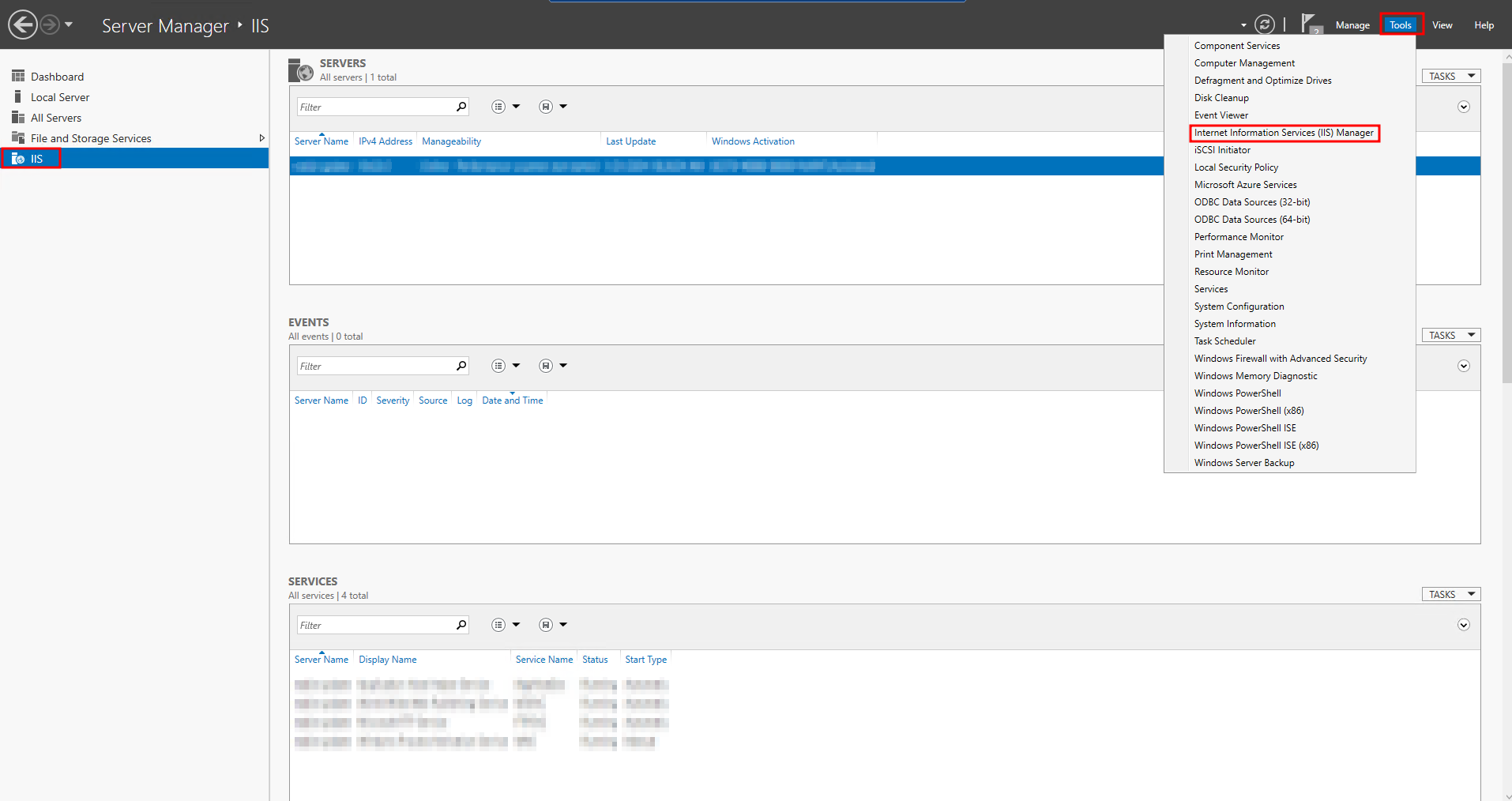 2. [IIS - Tools - Internet Information Services (IIS) Manager]를 클릭한다.