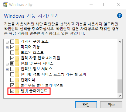 ■ Windows에서 telnet 활성화 방법