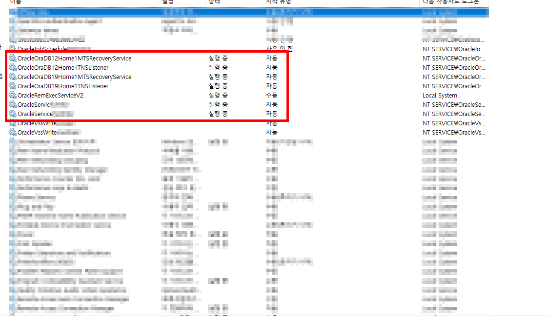 2. 해결을 위해서는 먼저 오라클 서비스가 실행 중인지 확인한다.